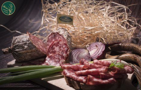 Prémiová sušená delikatesa z jelenieho mäsa, vyrábaná tradičným spôsobom a sušená 21 dní pre plnú a vyváženú chuť. Vysoký podiel jelenieho mäsa dopĺňa bravčové mäso a slanina, ktoré zabezpečujú šťavnatosť a jemnú textúru. Zmes prírodných korenín podčiarkuje charakter diviny bez toho, aby ho prebíjala.